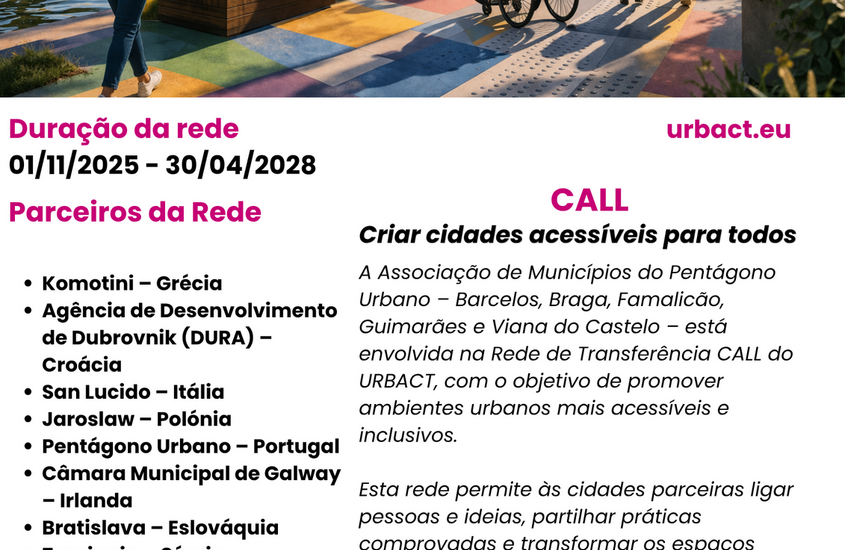 Município de Guimarães integra Pentágono Urbano em rede europeia URBACT para cidades mais acessíveis e inclusivas
