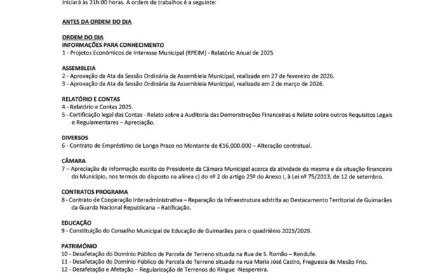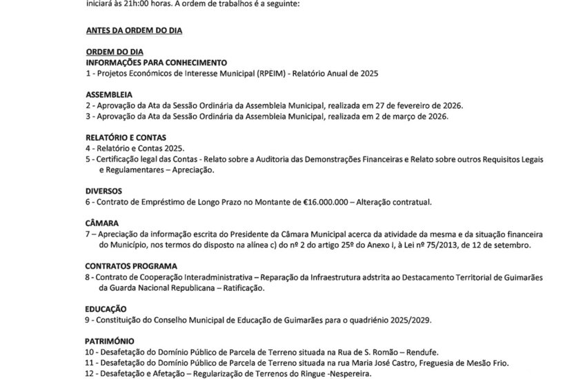 27 Abr 2026Foi com resultados concretos que impactam a vida dos Vimaranenses em áreas como a Habitação, Economia e Mobilidade que o Presidente da Câmara Municipal de Guimarães, ... -