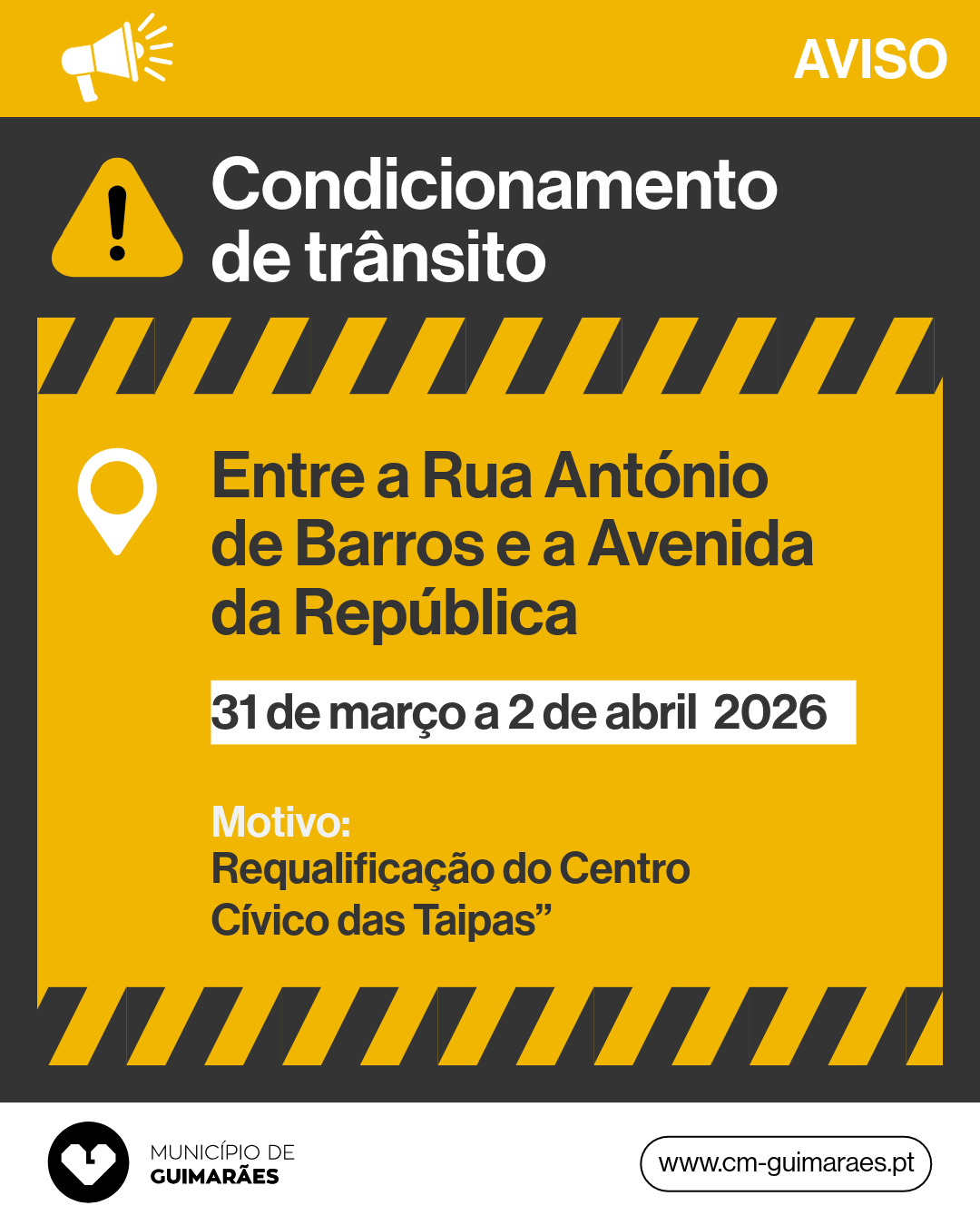 ℹ️ Mais informações: https://www.cm-guimaraes.pt/areas-de-intervencao/mobilidade-e-transportes/transito/condicionamentos