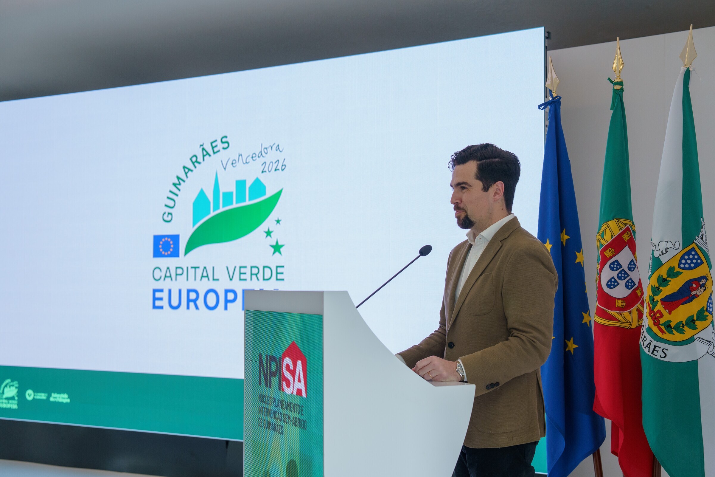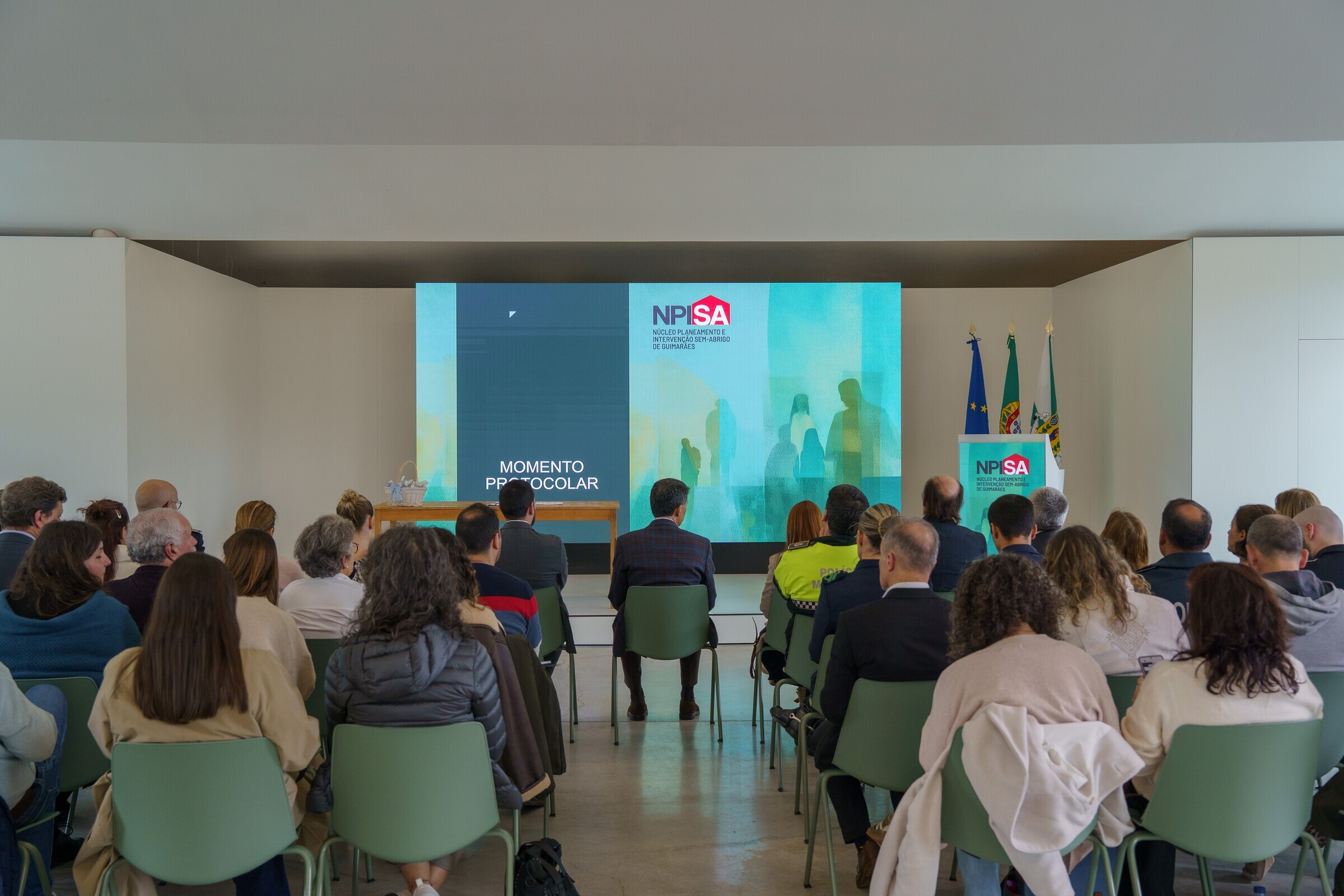 O momento protocolar foi conduzido pelo Vice-Presidente da Câmara Municipal de Guimarães, Eduardo Leite, em representação do Presidente da Câmara Municipal. Na ocasião, o autarca reforçou o compromisso do Município com uma intervenção articulada e centrada nas pessoas: “Em Guimarães continuaremos a trabalhar em rede para garantir respostas dignas e eficazes às pessoas em situação de sem-abrigo.”