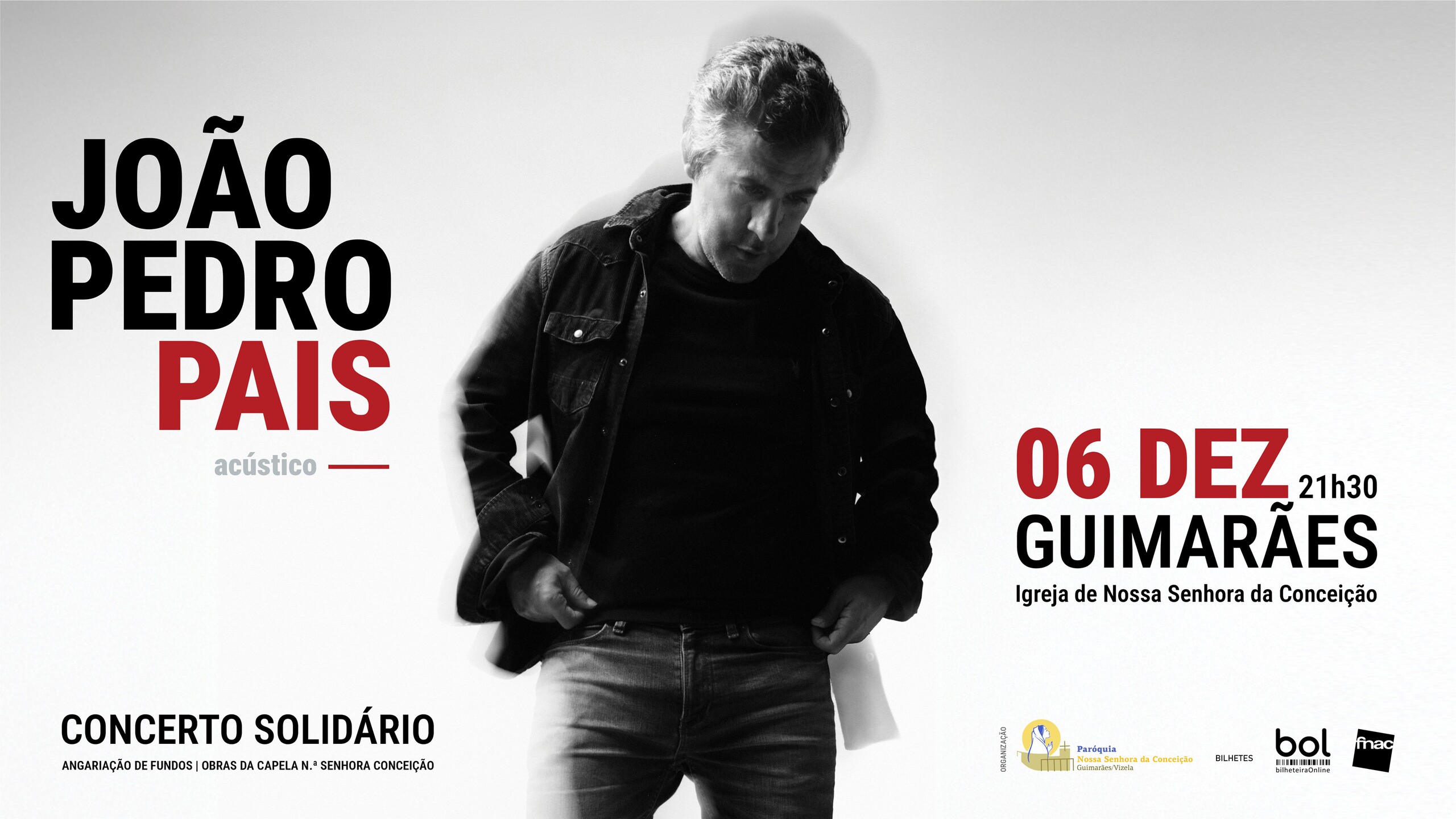 João Pedro Pais atua no próximo dia 6 de dezembro, às 21h30, na Igreja de Nossa Senhora da Conceição, em Guimarães, num espetáculo solidário cuja receita reverterá para a reabilitação da Capela de Nossa Senhora da Conceição, classificada como Imóvel de Interesse Público e com origens que remontam ao século XVI.