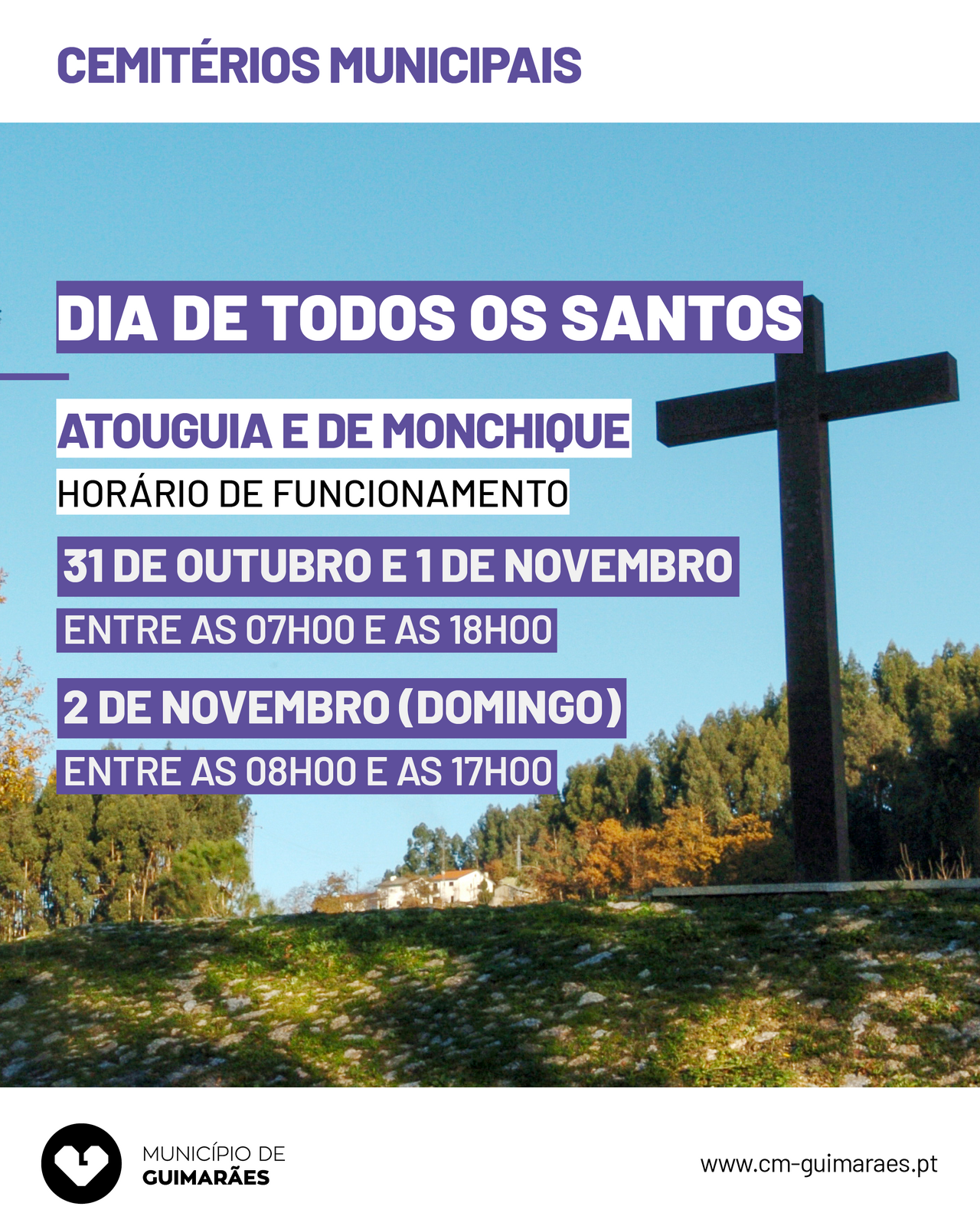 A Câmara Municipal de Guimarães reafirma o seu compromisso em proporcionar um ambiente seguro, acolhedor e digno, para que todos possam recordar e honrar os seus familiares, nesta data de especial significado.