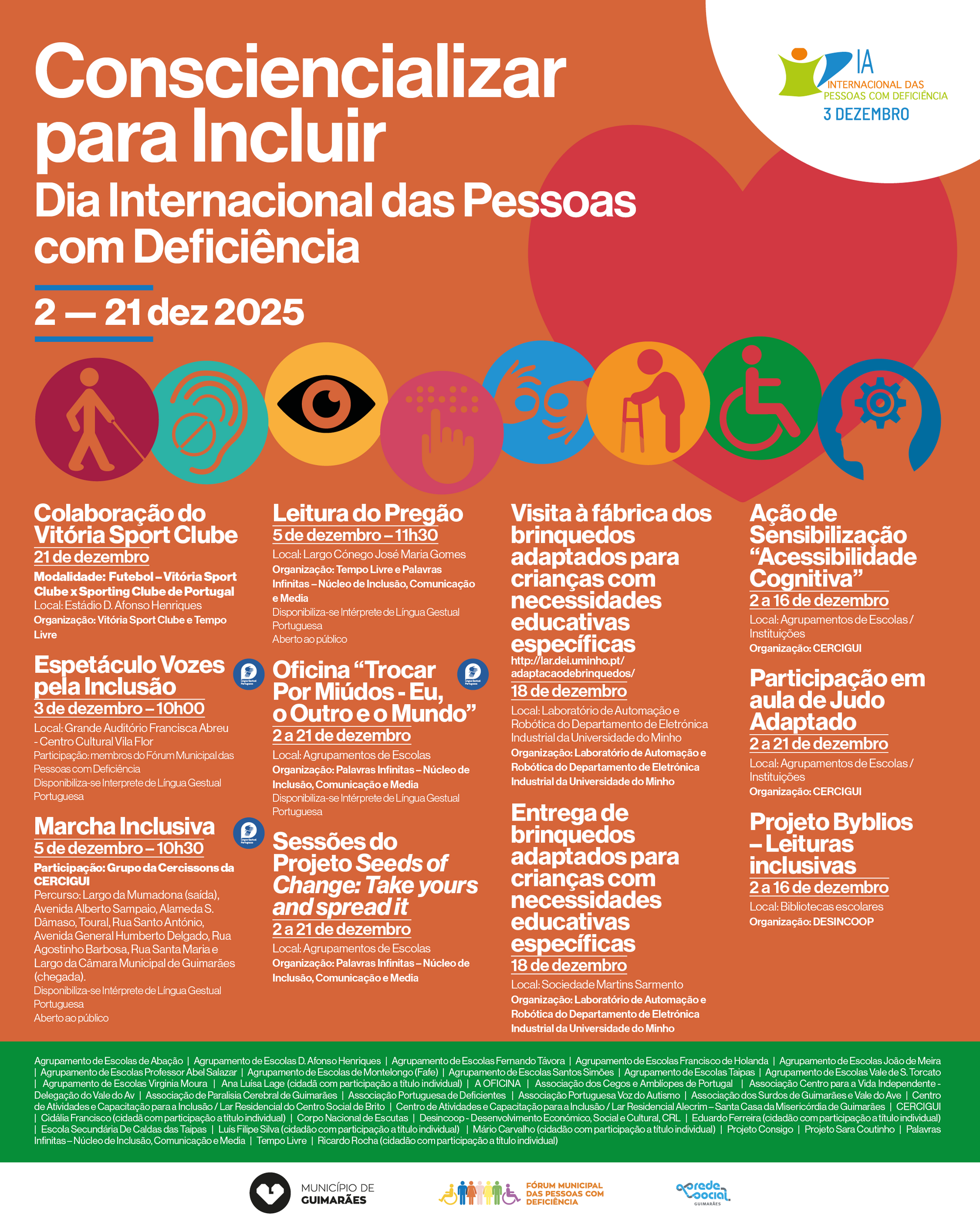 O programa decorre entre 02 e 21 de dezembro e inclui um conjunto de ações que visam sensibilizar a comunidade e promover a inclusão e a participação plena das pessoas com deficiência.